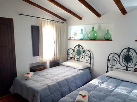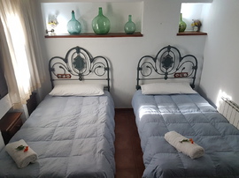 Nuestra casa rural dispone de 5 amplias habitaciones con vista al jardin, una de ellas triple, con capacidad para 11 personas (sin camas supletorias) salon comedor con chimenea, cocina completamente equipada, 2 baños luminos y terraza privada que amenizarán su estancia con maravillosas vistas al Parque Natural de la Sierra de Cazorla Segura y las Villas.
