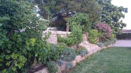 Y que decir de este precioso jardín, el lugar ideal para desconectar y conectar con la naturaleza en su estado más puro, maravillosa y romántica estancia con numerosos senderos que te invitan a pasear y disfrutar de sus privilegiadas vistas, confortables rincones con fuentes y múltiples zonas donde relajarse, leer un libro, desayunar o almorzar… eso si, sin olvidar la dulce melodía y aroma que te acompañará durante todo tu estancia.