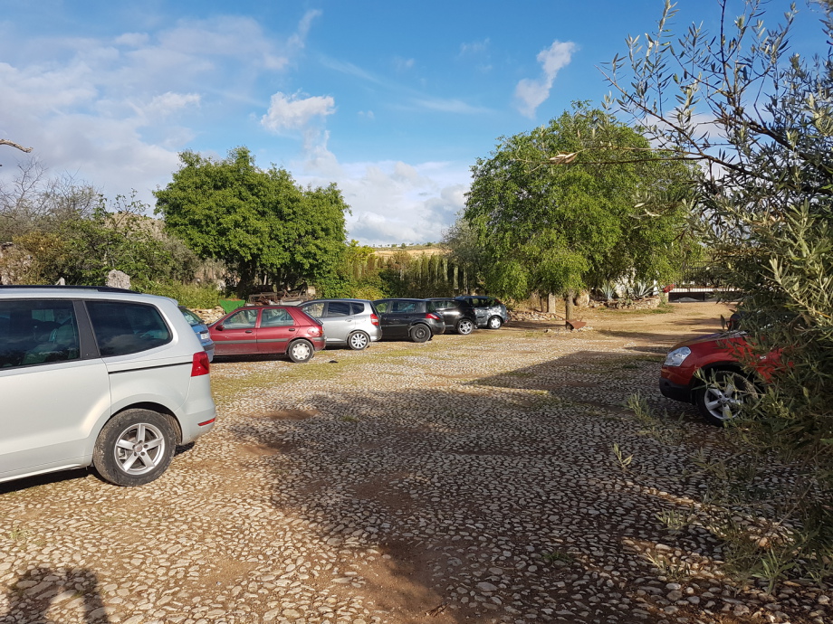 Amplio aparcamiento dentro del recinto amurallado con zona de sombras, máxima seguridad para sus vehículos.